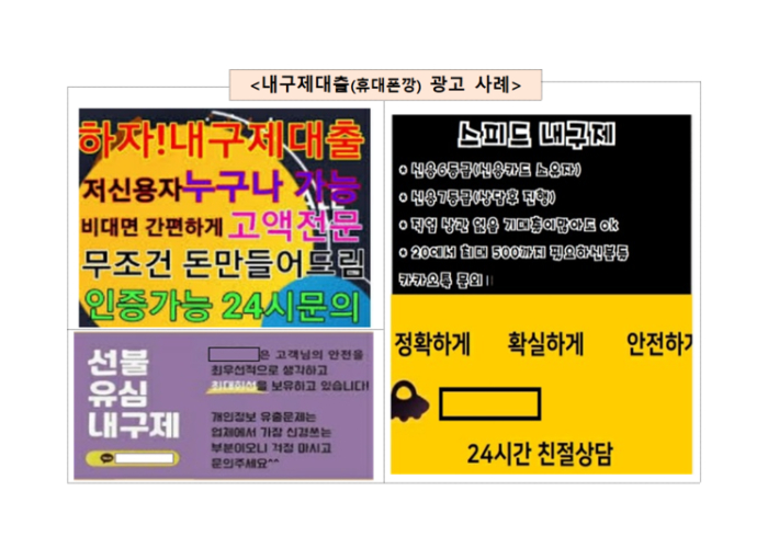 광고용 전화번호가 아닌 다른번호로 전화하여 대출을 권유하는 업체