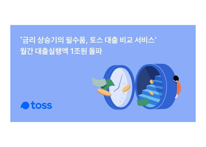 토스의 대출 비교 서비스가 월 대출실생금액 1조원을 달성했다.토스는 지난 5월 한달간 '대출 비교 서비스'를 통해 1조445억원의 대출이 실행됐다고 7일 밝혔다. 총 누적 대출실행액은 11조1000억원에 달한다.서비스를 이용하는 시간은 약 20초 안팎이 걸리며, 여러 ..